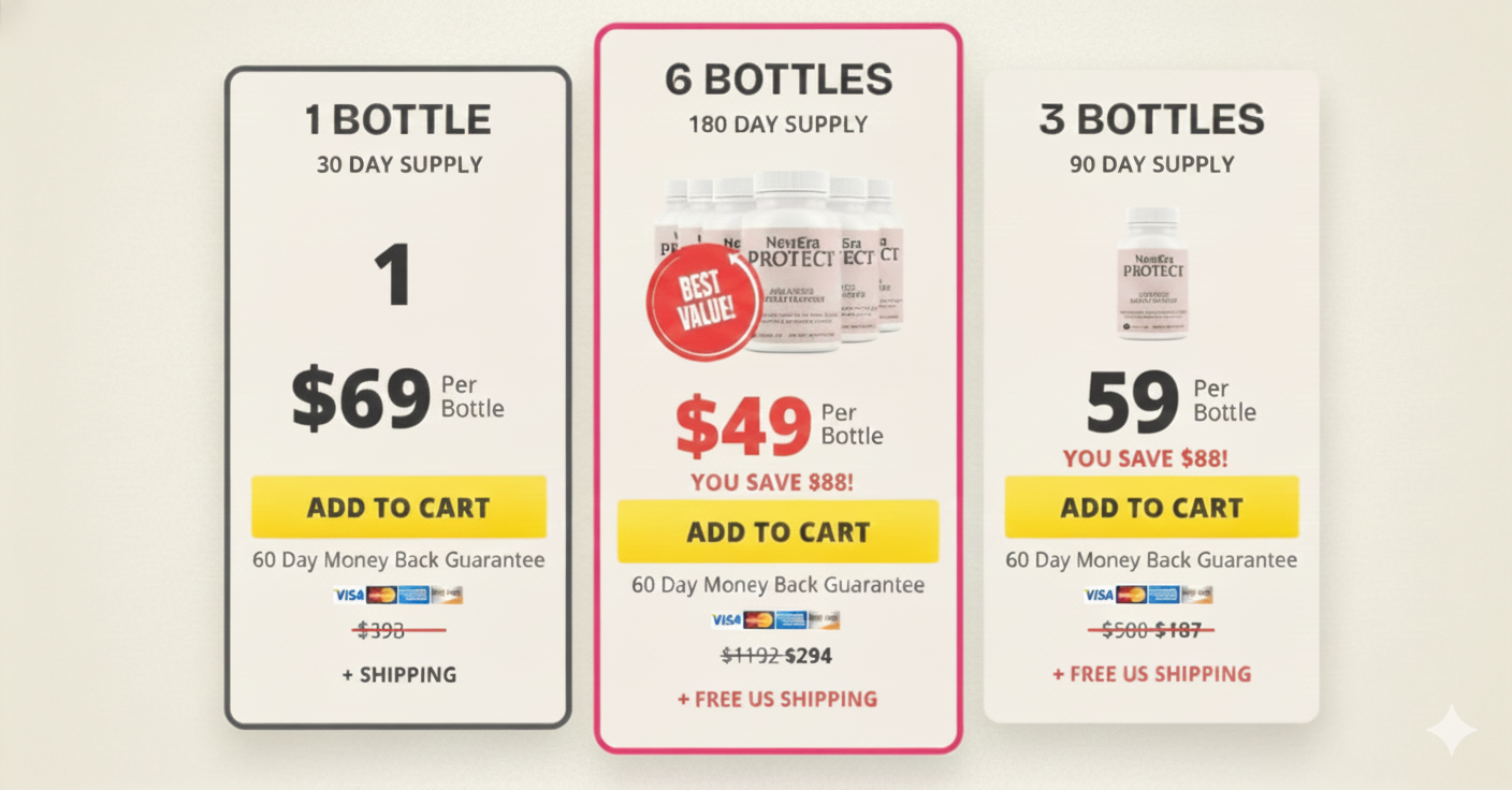 Pricing may vary depending on promotions, but typically supplements like New Era Protect are offered in: